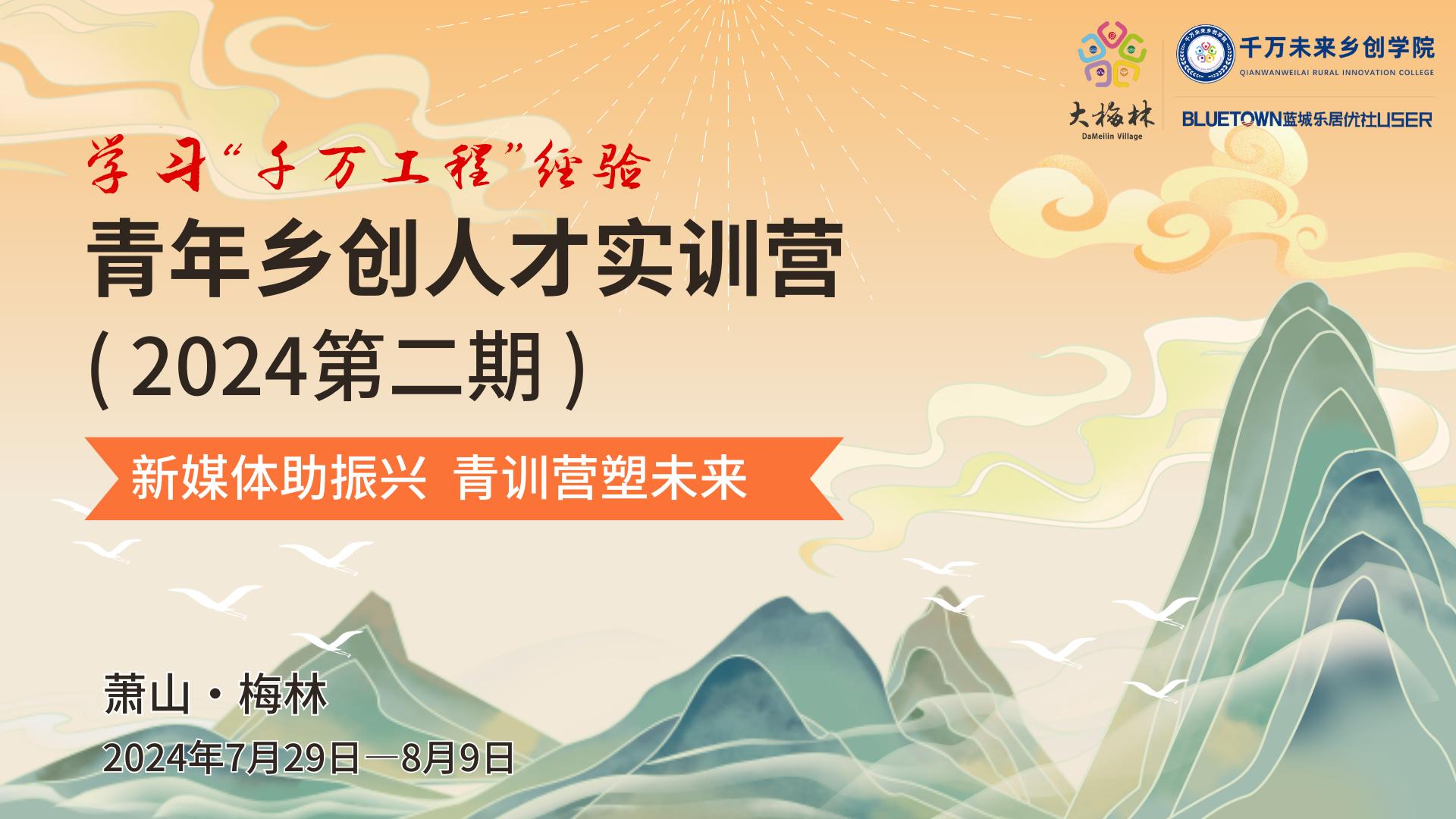为响应国家一号文件关于“千万工程”文件内容,满足乡村发展需求与国家战略定位,千万未来乡创学院携手行业内相关政、企、学等多方力量,推出《青年乡创人才实训营第二期》并将于2024年7月29日—8月9日,在“千万工程”源起地——杭州市梅林村举办。