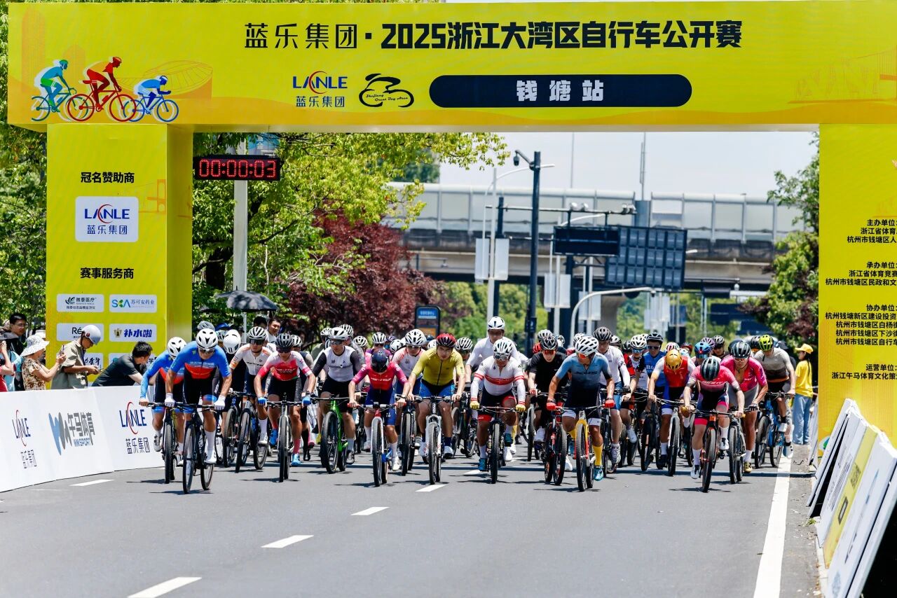 6月29日,蓝乐集团·2025浙江大湾区自行车公开赛在钱塘区激情开赛。今年是浙江大湾区自行车公开赛成功举办的第三届,吸引了近一百个车队和个人,分别参加五个组别进行角逐,共同演绎了一场速度与激情的视觉盛宴。赛事的成功举办不仅有力倡导了"低碳出行、健康生活"的绿色理念,更向全国展现了钱塘区独特的城市魅力与活力。本次自行车赛事是由浙江省体育局、杭州市钱塘区人民政府主办,浙江省体育竞赛中心、杭州市钱塘区民政和文化旅游体育局承办,杭州钱塘新区建设投资集团有限公司、杭州市钱塘区白杨街道办事处、杭州市钱塘区下沙街道办事处、杭州市钱塘区自行车运动协会协办,浙江午马体育文化策划有限公司运营。出席开幕式的领导及嘉宾有:浙江省体育局党组成员、副局长朱启南;杭州市体育局党组成员、二级巡视员漆宪忠;杭州钱塘新区党工委副书记、管委会主任,钱塘区委副书记、区长沈燕俊;杭州钱塘新区管委会副主任,钱塘区副区长潘伟红,杭州钱塘新区管委会副主任,钱塘区副区长,区公安分局局长郭立峰;钱塘区民政和文化旅游体育局党委书记刘少平;钱塘区民政和文化旅游体育局局长夏海琴;蓝城集团副总裁,蓝乐集团党委书记、董事长、总裁裘黎明。