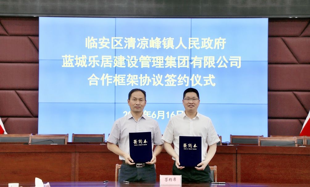 6月16日,临安区清凉峰镇与蓝城乐居战略合作签约仪式在临安区清凉峰镇人民政府会议室举行。